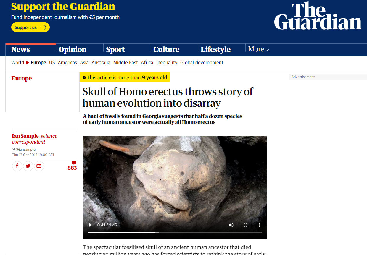სტატიაში გამოთქმულია მოსაზრება, რომ „ჰომოს გვარის წარმომადგენლები, მათ შორის - აფრიკაში აღმოჩენილი უძველესი ნამარხები, ევოლუციის ერთ ხაზს წარმოადგენს. ეს აიძულებს მეცნიერებს, გააანალიზონ დამკვიდრებული მოსაზრებები ადრეული ჰომოს რამდენიმე სახეობის არსებობის შესახებ.