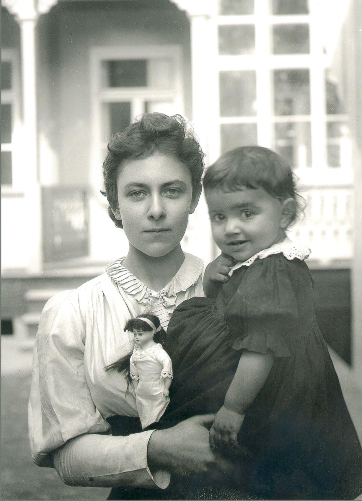 ფოტო ნიკო ნიკოლაძის: ნინო თავის უმცროს დასთან - თამართან ერთად - 1893 წელს, დიდ ჯიხაიშში.