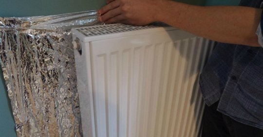 რადიატორების მიერ გამოყოფილი სითბოს გარკვეული ნაწილის ნეიტრალიზება ხდება სიცივით, რომელიც კედლიდან აღწევს. ამიტომ, მიაწებეთ კედელზე ფოლგა ისე, რომ ოდნავ აჭარბებდეს რადიატორის ზომას. ამ ხერხით ბინაში ტემპერატურას 2-3 გრადუსით გაზრდით.