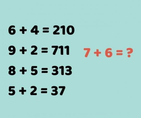თავიდან ამოცანა შეიძლება უცნაური მოგეჩვენოთ. როგორ შეიძლება 6+4=210 ან 9+2=711 უდრიდეს?