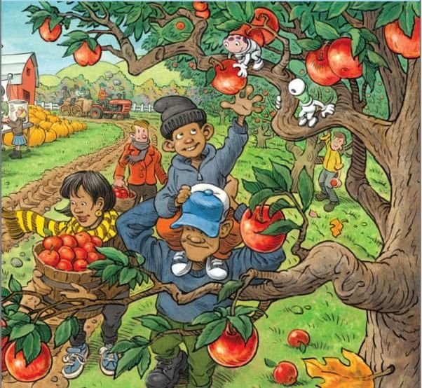 ფოტოზე შემოდგომაა გამოსახული და ადამიანები ერთმანეთს მოსავალის აღებასა და დაბინავებაში ეხმარებიან. მოსავლის აღებაში ადამიანებთან ერთად, უცნაური არსებებიც არიან ჩართულნი.