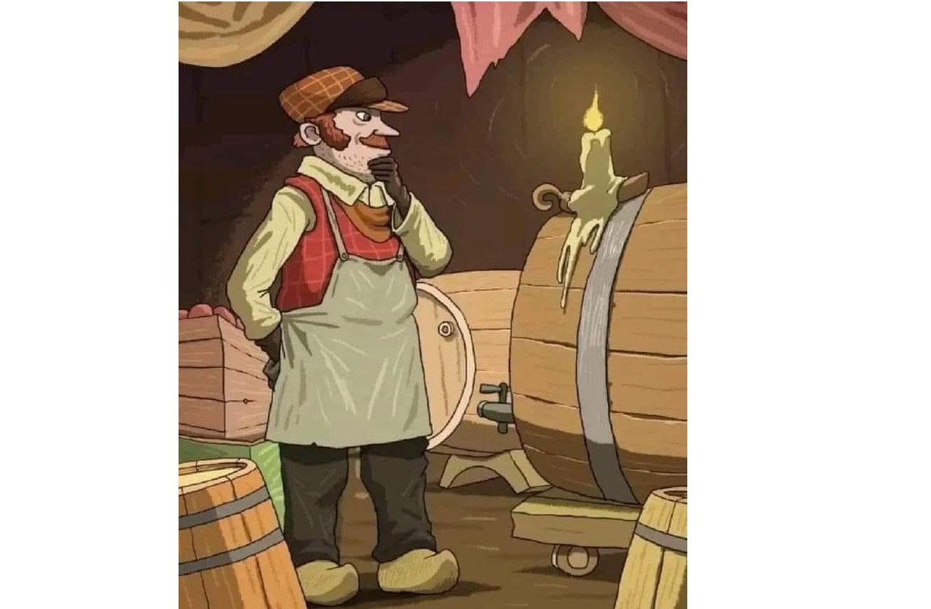 ნახატზე ერთი შეხედვით შუახნის მამაკაცია გამოსახული, რომელიც ღვინის სარდაფში იმყოფება.