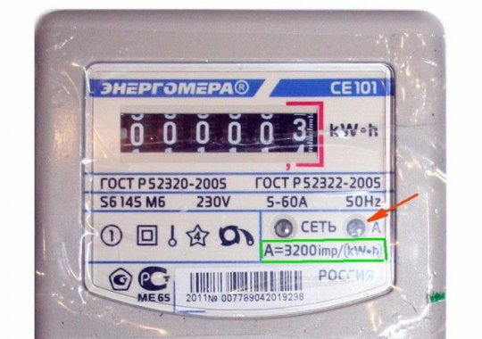 ეს უკანასკნელი ფოტოზე აღნიშნულია წითელი ისრით (აღსანიშნავია, რომ რიცხვი "А" სხვადასხვა მრიცხველებში შეიძლება სხვადასხვა იყოს). სწორედ ეს ელექტრული იმპულსები ითვლება მრიცხველის მიერ. სხვანაირად რომ ვთაქვათ, ყოველი სამი ათას ორასი იმპულსი ითვლება ერთ კილოვატ*საათად.