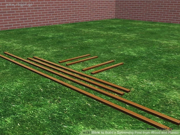 დაგჭირდებათ ხის ფიცრები 5 და 10 სმ სიგრძის, მინიმუმ 8 ცალი. კარკასის დასამზადებლად დაგჭირდებათ მინიმუმ 20 ცალი ფიცარი (გააჩნია აუზის სიმაღლეს). აუზის გვერდითა კედლებისთვის უნდა გააკეთოთ ფიცრების კარკასი. გაარკვიეთ რა სიმაღლის აუზი გსურთ და შემდეგ დაჭერით ფიცრები შესაბამის სიგრძეზე.