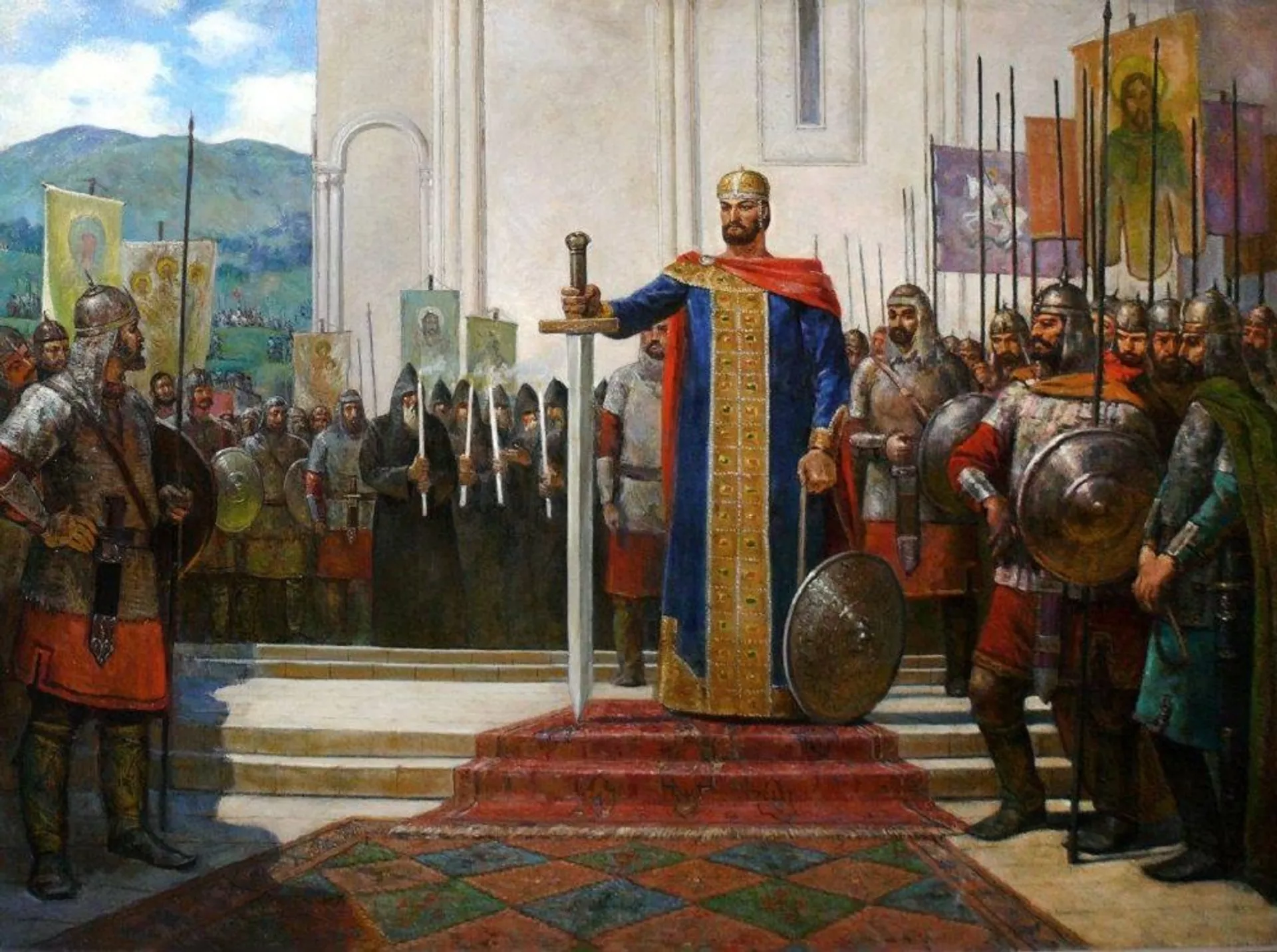 – რომენ ლაზარევიჩ, მიხეილ ჭიაურელი ახალი ფართოეკრანიანი, ფერადი ფილმის გადაღებას იწყებს ქართველ მეფეზე და თქვენს კოლეგა კოსმატოვთან ერთად თქვენი მიწვევა სურს. მან ეს ფუნქცია მე მომანდო, რადგან ფიქრობს, რომ შესაძლოა, უარი თქვათ და აქ ამიტომ მოგიწვიეთ. რას იტყვით, თანახმა ხართ, „დავით აღმაშენებლის“ ბატალური (საომარი) სცენები გადაიღოთ?