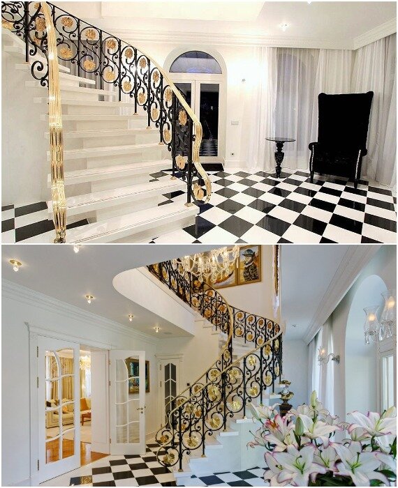 სახლის საერთო ფართობი ეზოს ჩათვლით 2.4 ათასი კვადრატული მეტრია. მას 5 საძინებელი, ბიბლიოთეკა, კინოთეატრი, ზამთრის ბაღი და შადრევანი აქვს.