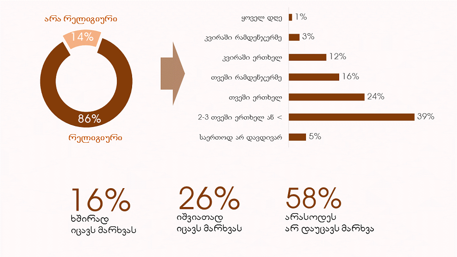 აღსანიშნავია, რომ რელიგიური თბილისელების 58%-ს არასდროს არ დაუცავს მარხვა. 16% კი ხშირად იცავს მას.
