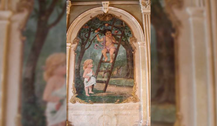 როგორც იმ პერიოდის მდიდრული სახლებისთვის იყო დამახასიათებელი, ამ შენობის კედლებიც საუცხოოდ იყო მოხატული და გაფორმებული ოქროსფერი ორნამენტებით. ჭერიდან ანგელოზები დაგყურებენ, ხოლო კედლებზე “ვეფხისტყაოსნის” ცნობილი სცენებია გაცოცხლებული. აღსანიშნავია, რომ ილუსტრაციები ცნობილი უნგრელი მხატვრის მიხაი ზიჩის მიხედვითაა შექმნილი.