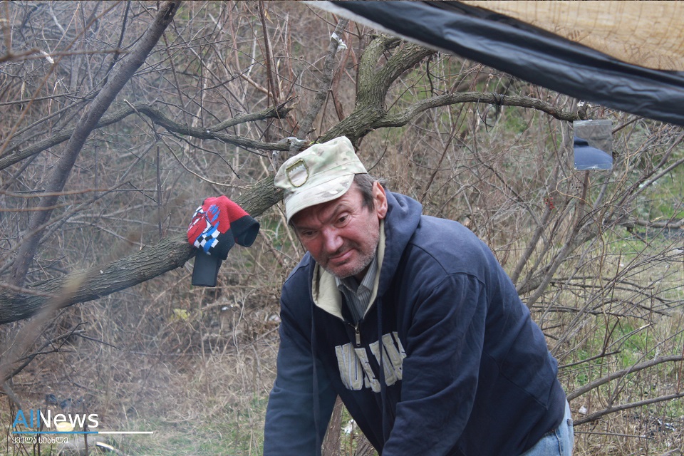 მისამართი - ქალაქი რუსთავი, მტკვრის მარჯვენა სანაპირო, ე.წ კუკუშკას მიმდებარე ტერიტორია. ბორცვებით შემოსაზღვრულ დაბლობზე 58 წლის ალექსანდრე პისარენკო, მისი მეუღლე და შვილი ცელოფნებისა და ტომრებისგან გაკეთებულ ქოხში ზამთრის სიცივეს უკვე მეექვსე თვეა ემალებიან.