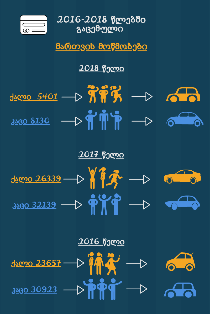 რამდენი ქალი და კაცი იღებს მართვის მოწმობას საქართველოში ყოველწლიურად?