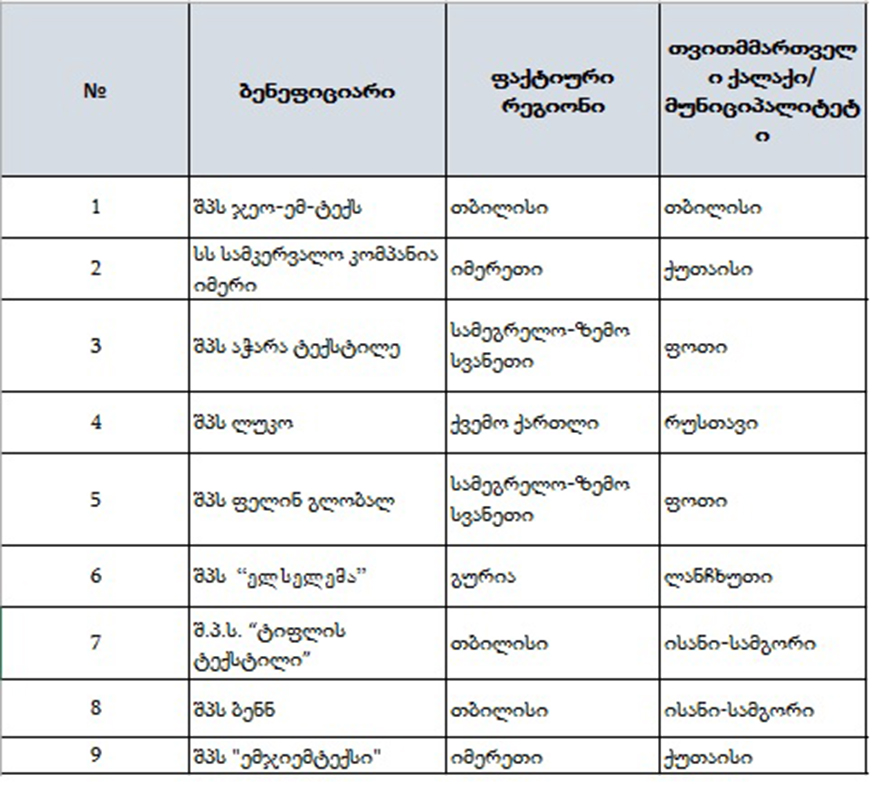"აწარმოე საქართველოში"-ს მხარდაჭერით საქართველოში სულ 9 სამკერვალო ფაბრიკა ფუნქციონირებს. ესენია: