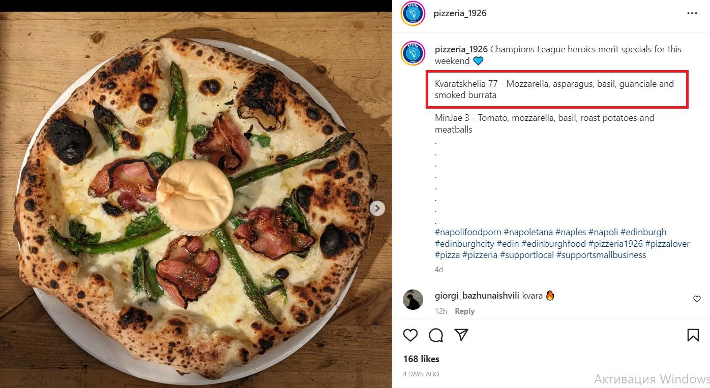 ედინბურგულ პიცერიაში კლიენტებს ხვიჩა კვარაცხელიას სახელობის პიცას სთავაზობენ