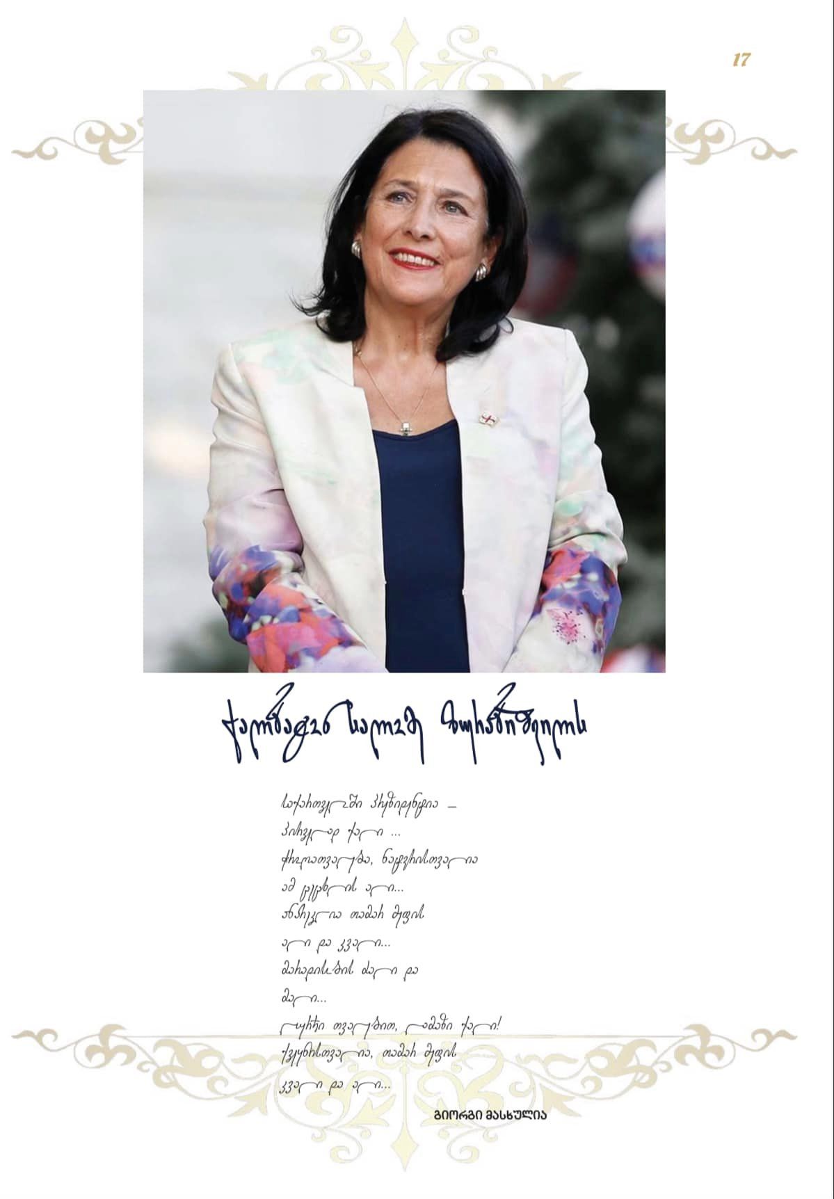 ცნობილმა დიზაინერმა და სამოდელო სააგენტოს დამფუძნებელმა, კონკურს „მისტერ ვალენტინის“ დამფუძნებელმა გიორგი მასხულიამ საქართველოს პრეზიდენტს სალომე ზურაბიშვილს ლექსი მიუძღვნა. ცნობილია, რომ მასხულია ბოლო წლებში საქართველოს მწერალთა კავშირში გაწევრიანდა.