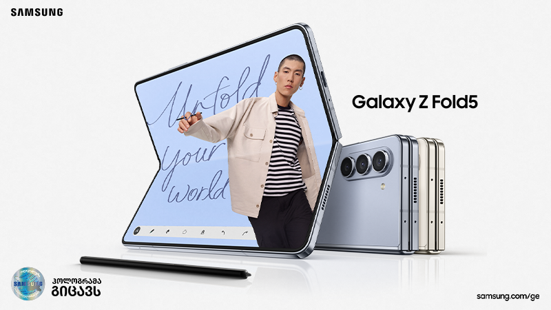 ახალი Galaxy Z Flip5 და Z Fold5 სამსუნგის საქართველოს ოფიციალური პარტნიორების მაღაზიათა ქსელებში მალე გაიყიდება. თვალი ადევნეთ სამსუნგის ოფიციალურ ვებ-გვერდს Samsung.com/ge , რათა არ გამოგრჩეთ სპეციალური შეთავაზებები.