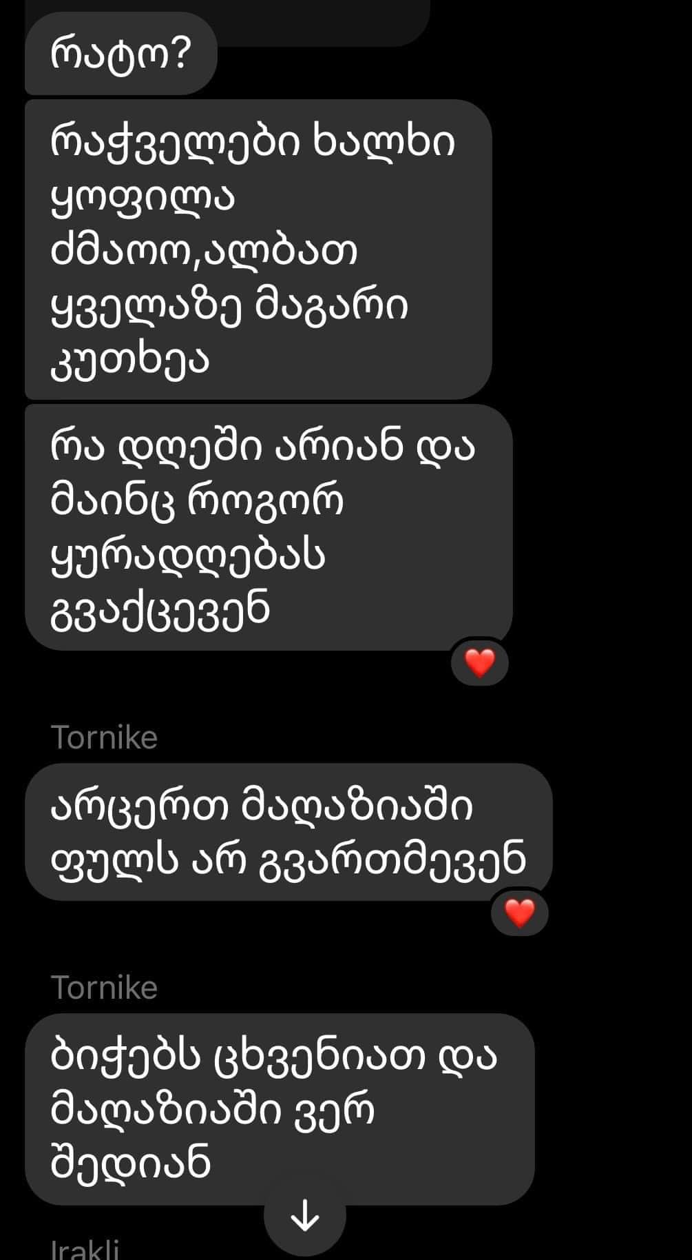 სინამდვილეში, ჩვენ ისე გვჭირდება ერთმანეთი როგორც ჰაერი, წყალი, მზე და ა.შ. ამიტომ გავუფრთხილდეთ და ვიზრუნოთ ერთმანეთზე,“ - წერს მოქალაქე.