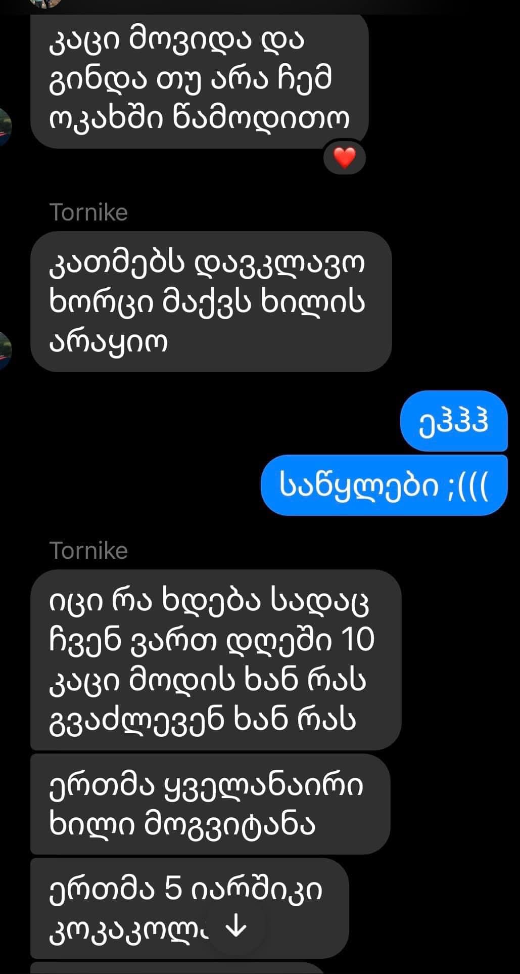 „ჩემი მაშველი ძმა იწერებოდა დღეს რაჭველებზე. ასეთ ვითარებაშიც რომ შეძლებს ადამიანი ადამიანად დარჩენას, ალბათ, ამ დროს ვხვდებით, როგორი ძვირფასია მეორე ადამიანის არსებობა ჩვენს ცხოვრებაში.