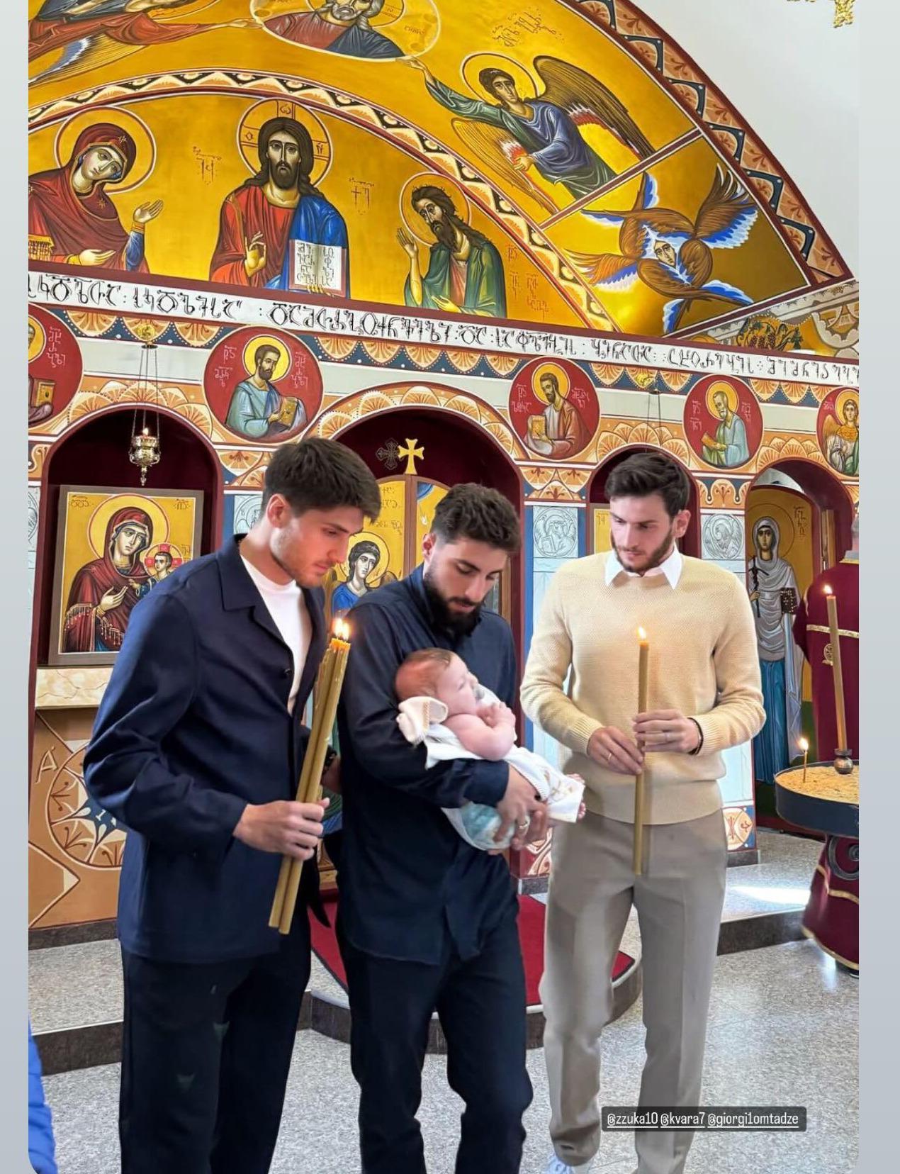 შეგახსნებთ, რომ მარტში ნაკრების ევროპის ჩემპიონატზე გასვლიდან მეორე დღეს კვარაცხელიამ დავითაშვილის შვილი მონათლა.