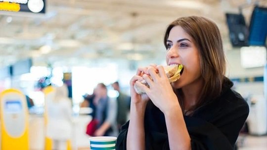 ყველამ იცის, რომ აეროპორტში უსაფრთხოების კონტროლის გავლა ნებისმიერი სახის სითხით კატეგორიულად აკრძალულია, მაგრამ მყარი საკვების უმეტესობა ნებადართულია. თან იქონიეთ ბევრი სენდვიჩი, კრეკერი, ბანანი, ვაშლი, რომ თვითმფრინავის მოლოდინში წახემსება შეძლოთ. ალბათ, ჭამა მოგინდებათ, ხოლო აეროპორტის კაფეებში ფასები წარმოუდგენლად მაღალია.
