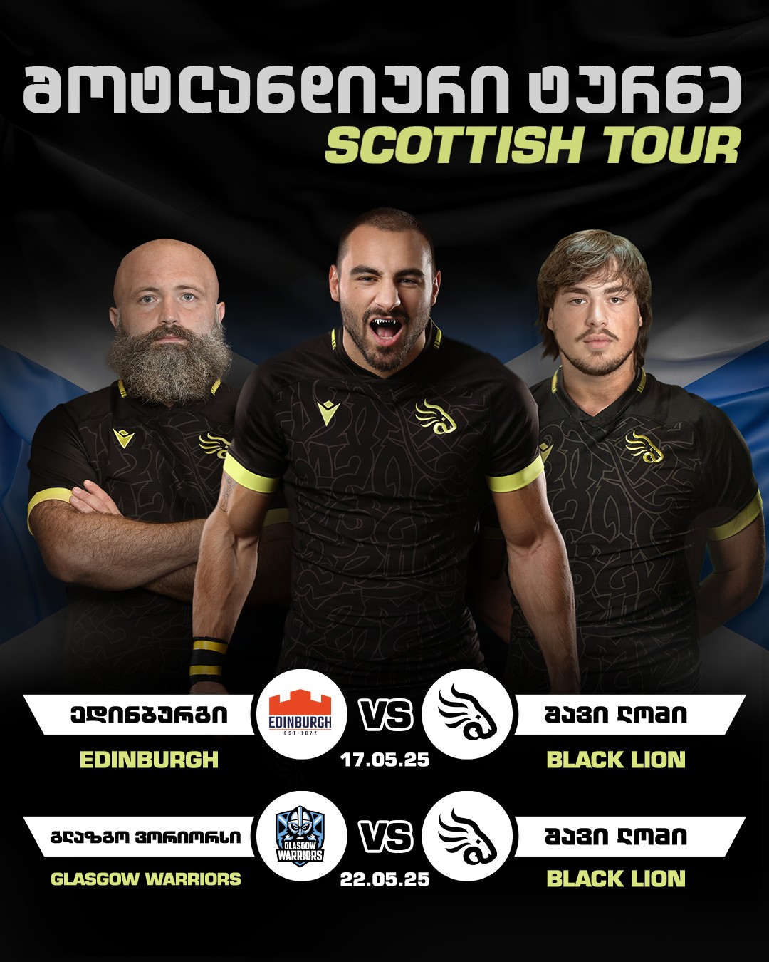 “შავი ლომი” 15 მაისს ბრიტანულ ტურნეში 31 მორაგბით გაემგზავრება და შოტლანდიურ ფრენჩაიზებთან - „ედინბურგA“ - სთან და „გლაზგო ვორიორსთან“ ამხანაგურ თამაშებს გამართავს.
